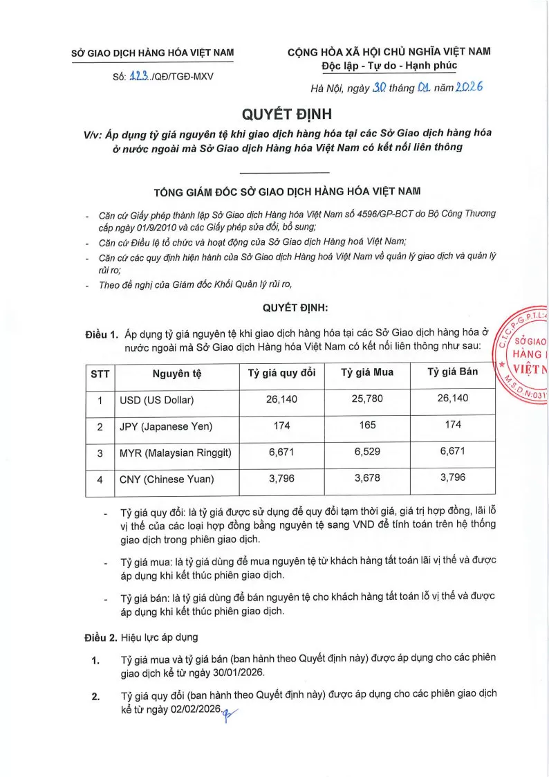 - Tỷ giá mua và tỷ giá bán được áp dụng cho các phiên giao dịch kể từ ngày 30/01/2026.