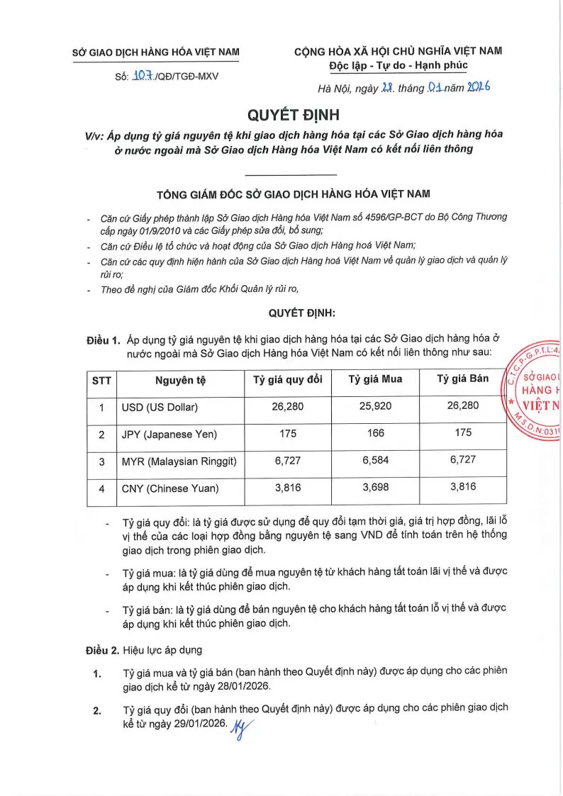 - Tỷ giá quy đổi được áp dụng cho các phiên giao dịch kể từ ngày 29/01/2026.