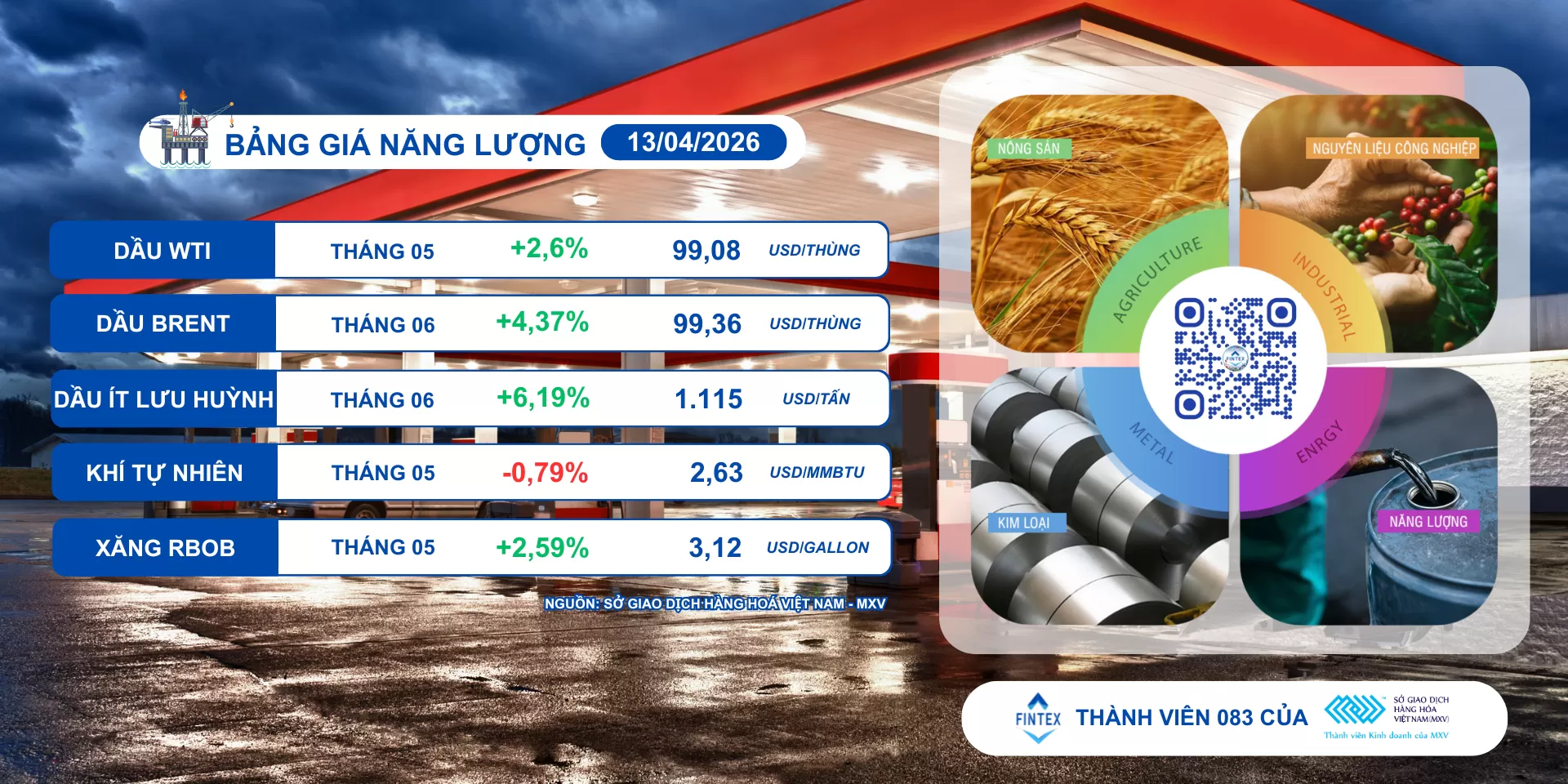 Thị trường hàng hóa nguyên liệu thế giới ghi nhận diễn biến giằng co trở lại trong phiên giao dịch ngày 13/4. Trong bối cảnh xu hướng phân hóa chi phối toàn thị trường, lực mua bứt phá ở nhóm năng lượng và kim loại đã trở thành động lực chính, đưa MXV-Index tăng 1,26% lên 2.810 điểm.