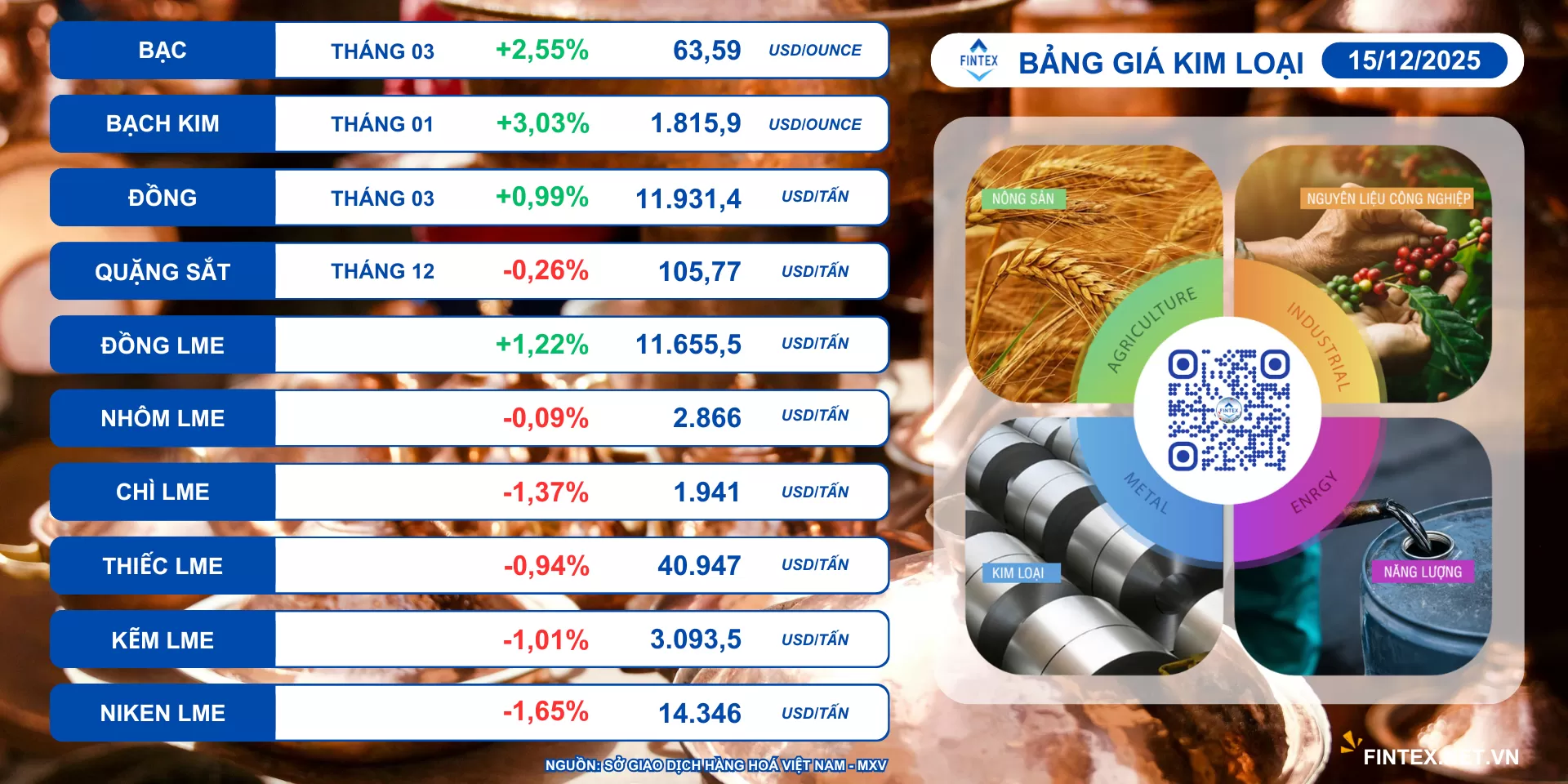 Lực bán tiếp tục chiếm ưu thế trên thị trường hàng hóa nguyên liệu thế giới trong phiên giao dịch ngày hôm qua (15/12).