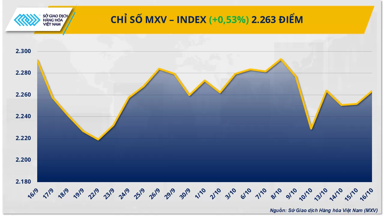 Lực mua lan tỏa cùng tâm lý tích cực của giới đầu tư đã giúp chỉ số MXV-Index tăng hơn 0,5%, lên 2.263 điểm.