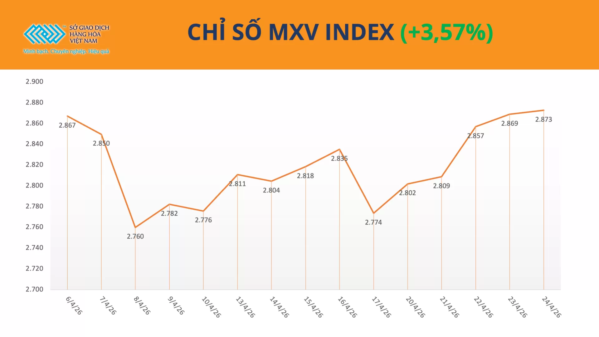 Căng thẳng địa chính trị tại Trung Đông tiếp tục leo thang trong tuần qua, trở thành lực đẩy chính khiến giá dầu thế giới tăng mạnh. Diễn biến này không chỉ làm gia tăng rủi ro nguồn cung năng lượng toàn cầu mà còn kéo theo áp lực chi phí, qua đó hỗ trợ đà tăng của nhiều mặt hàng nguyên liệu, trong đó có cà phê. Đóng cửa tuần, lực mua áp đảo kéo chỉ số MXV-Index tăng mạnh 3,57% lên 2.872 điểm.