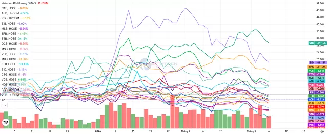 | Diễn biến cổ phiếu ngân hàng từ đầu năm 2026 đến nay |