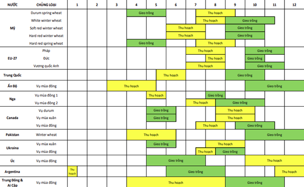 Thời gian trồng và thu hoạch Lúa mì trên thế giới