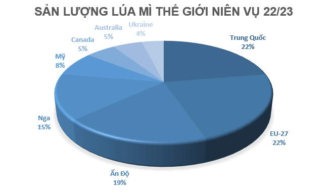 Sản lượng lúa mì thế giới niên vụ 22/23, Trung Quốc và EU-27 chiếm tới 17% Sau đó, là các quốc gia như Ấn độ, Nga,Mỹ…