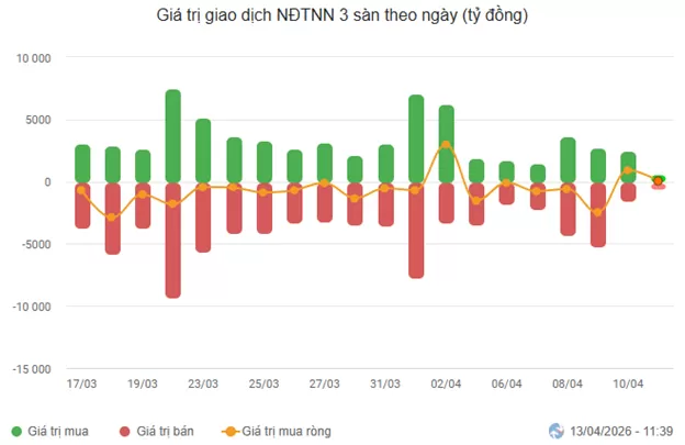 Khối ngoại duy trì mua ròng nhưng quy mô đã thu hẹp đáng kể, chỉ còn 38 tỷ đồng trên cả 3 sàn vào cuối phiên sáng. Hoạt động giao dịch của khối này hạ nhiệt ở cả hai chiều trong sáng nay. MBB (40 tỷ) và HPG (38 tỷ) đang dẫn đầu danh sách mua ròng, trong khi VPB (-32 tỷ) và FPT (-27 tỷ) là những cổ phiếu bị bán ròng nhiều nhất.