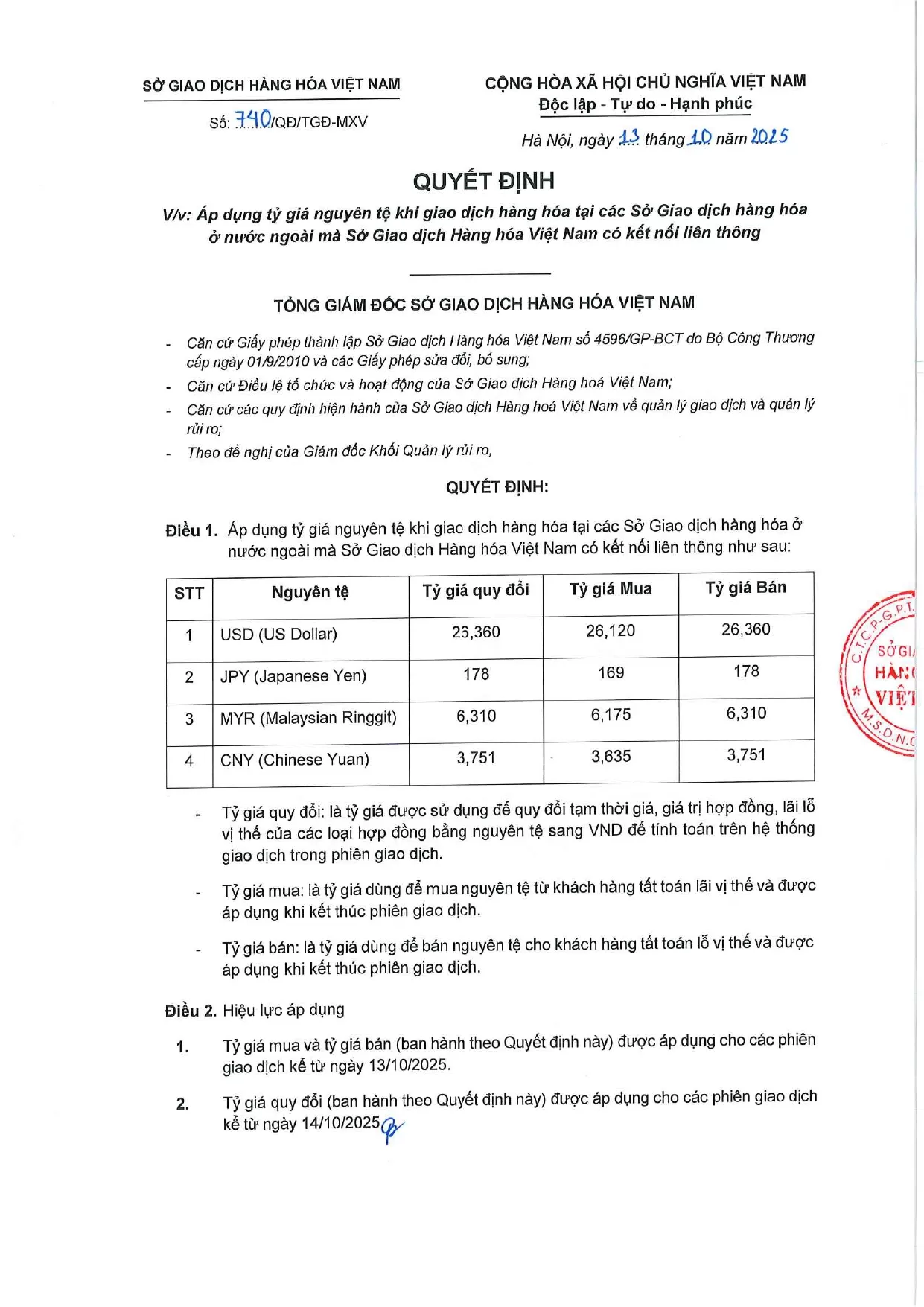 - Tỷ giá quy đổi được áp dụng cho các phiên giao dịch kể từ ngày 14/10/2025.