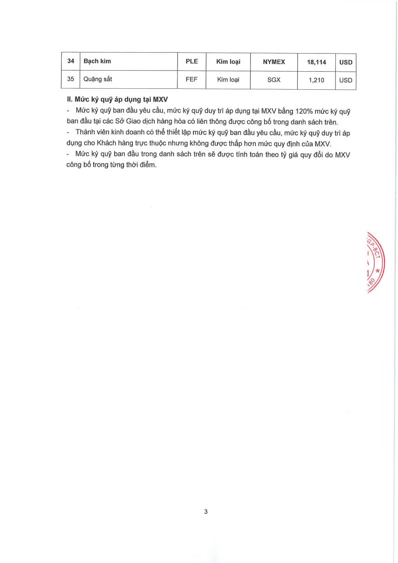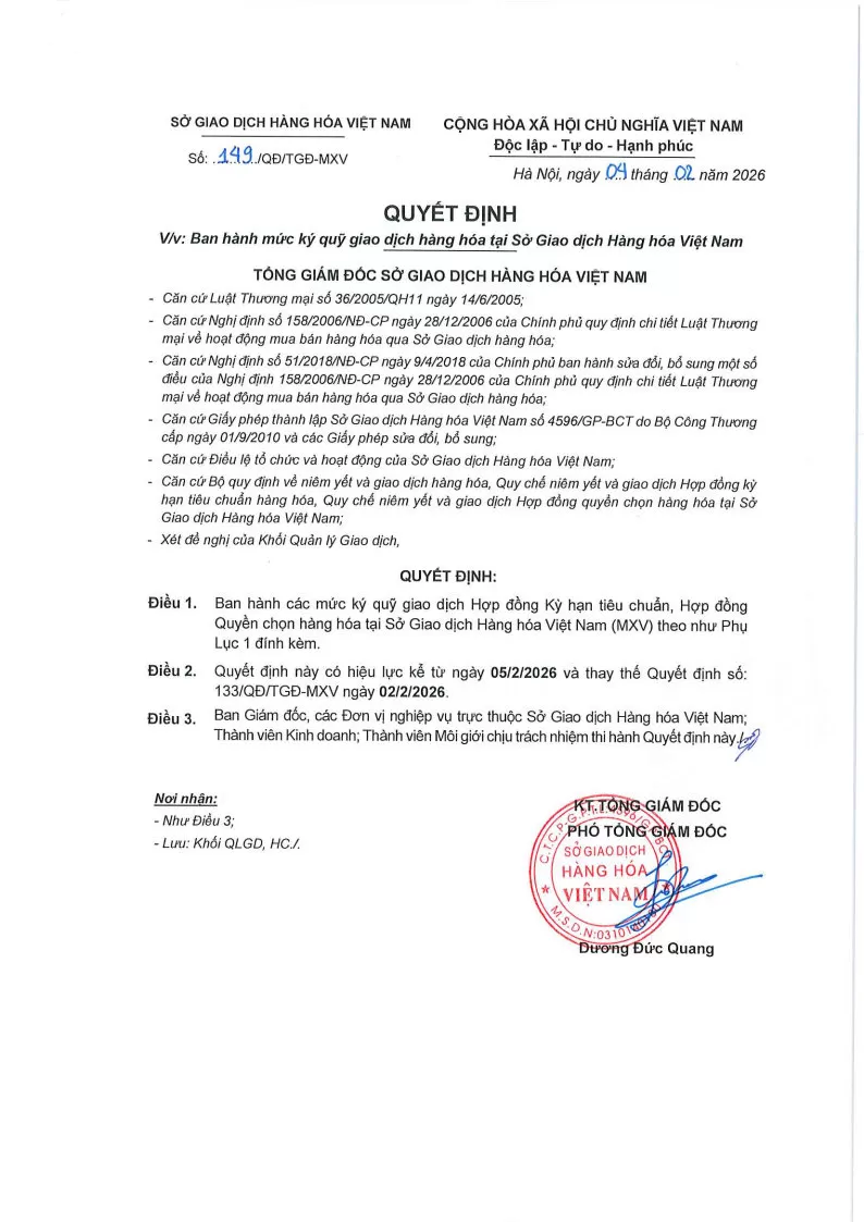 Áp dụng từ phiên giao dịch ngày 05/02/2026 và thay thế cho Quyết định số: 133/QĐ/TGĐ-MXV ngày 02/02/2026.