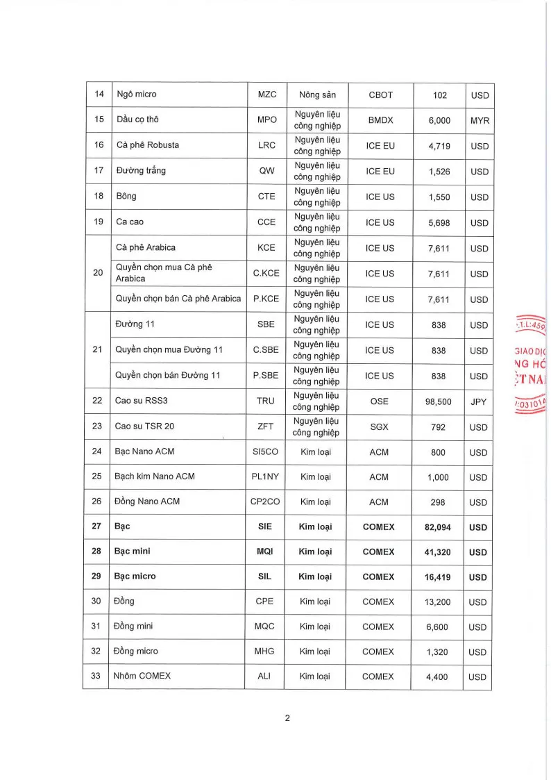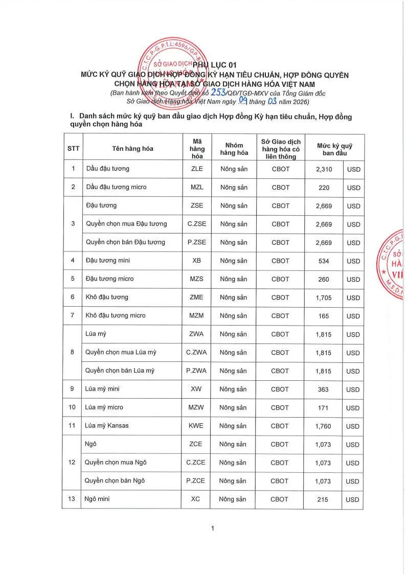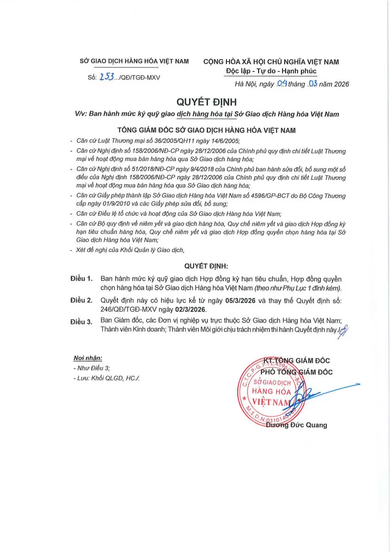 Áp dụng từ phiên giao dịch ngày 05/03/2026 và thay thế cho Quyết định số: 246/QĐ/TGĐ-MXV ngày 02/03/2026.