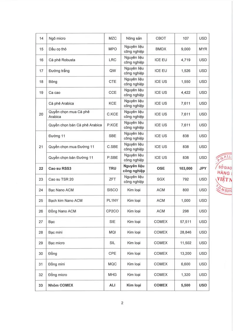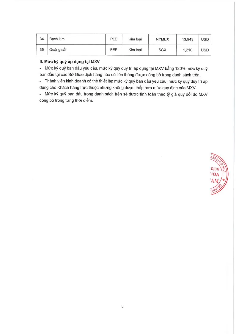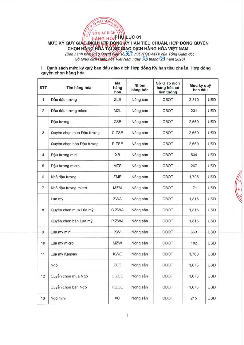 Áp dụng từ phiên giao dịch ngày 06/04/2026 và thay thế cho Quyết định số: 355/QĐ/TGĐ-MXV ngày 01/04/2026.