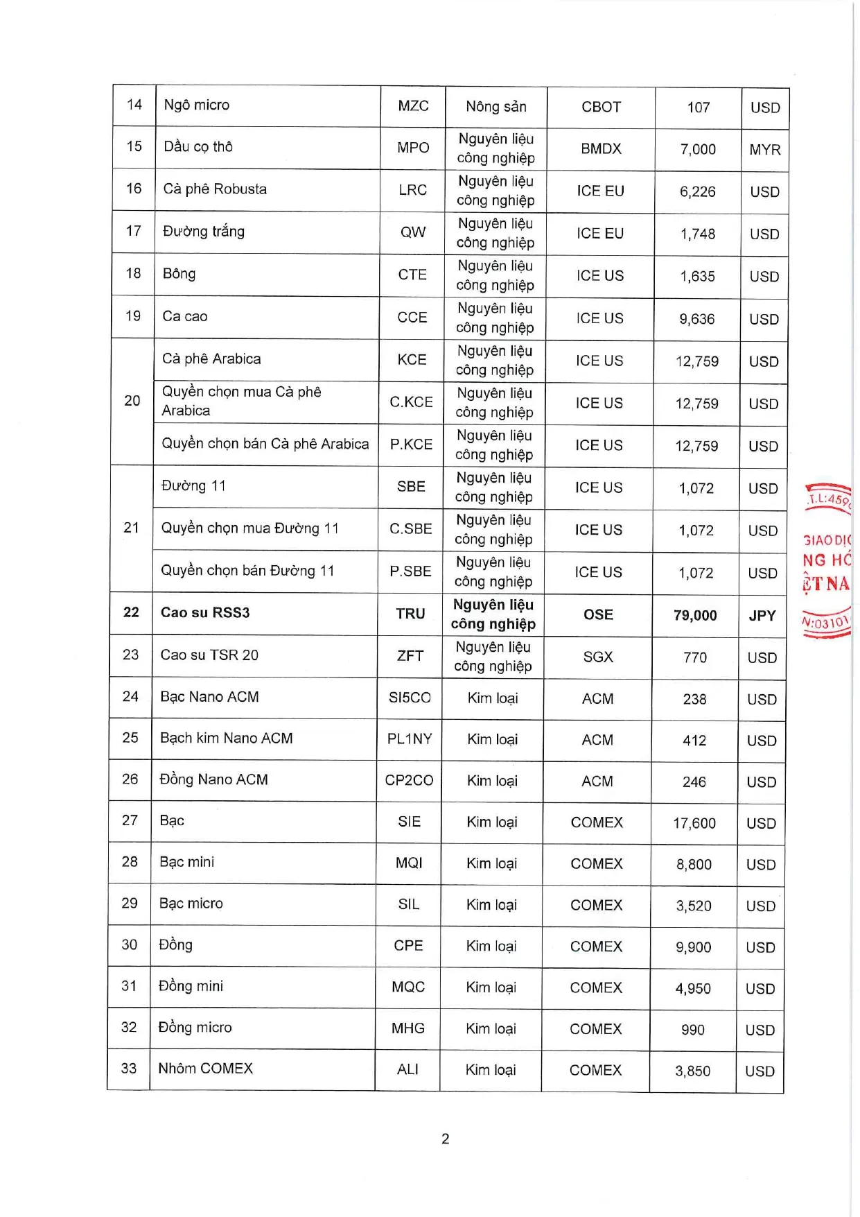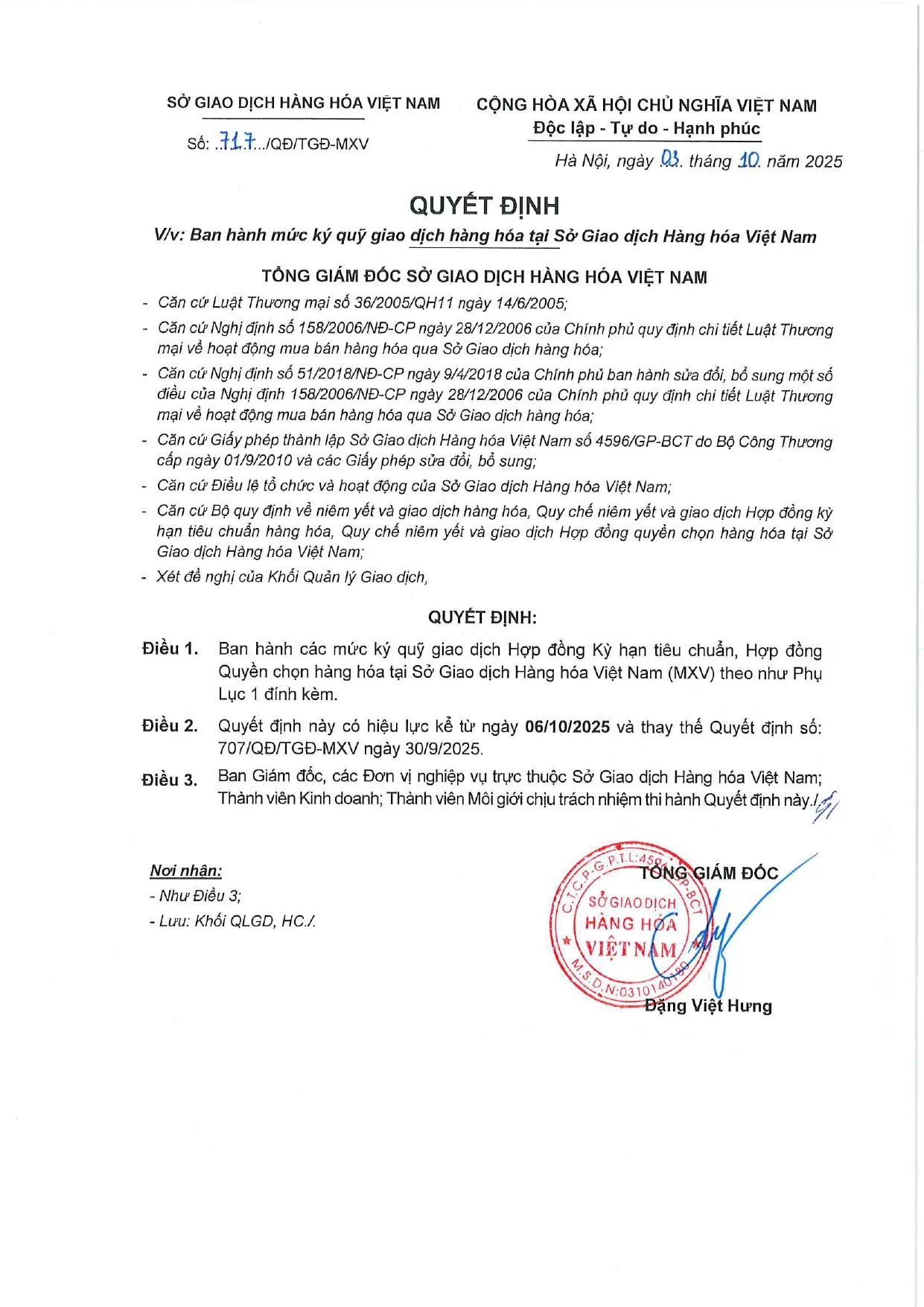 Áp dụng từ phiên giao dịch ngày 06/10/2025 và thay thế cho Quyết định số: 707/QĐ/TGĐ-MXV ngày 30/09/2025.