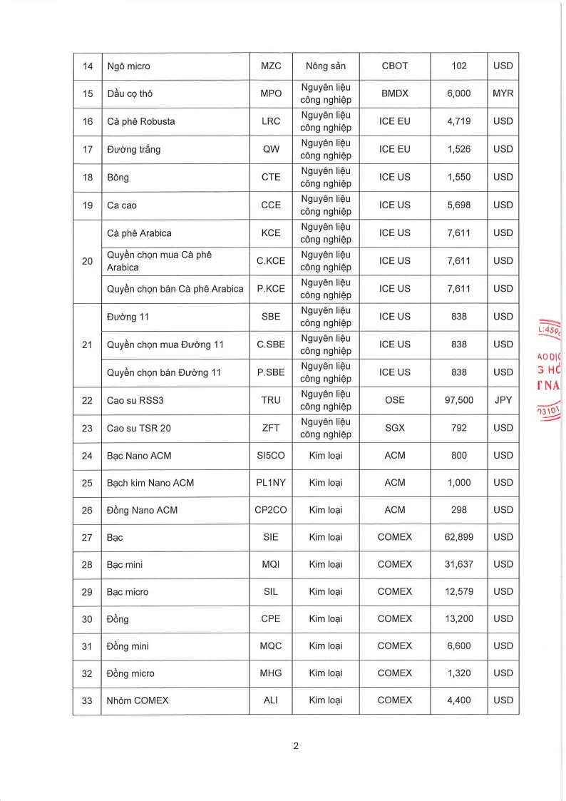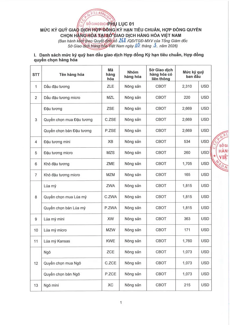 Áp dụng từ phiên giao dịch ngày 11/03/2026 và thay thế cho Quyết định số: 260/QĐ/TGĐ-MXV ngày 10/03/2026.