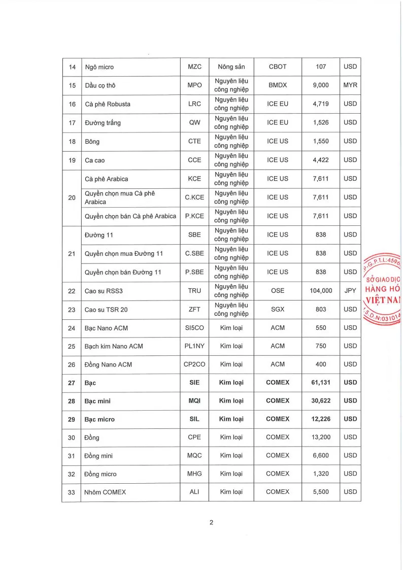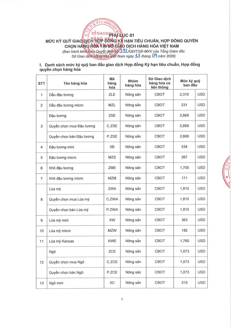 Áp dụng từ phiên giao dịch ngày 16/04/2026 và thay thế cho Quyết định số: 381/QĐ/TGĐ-MXV ngày 10/04/2026.