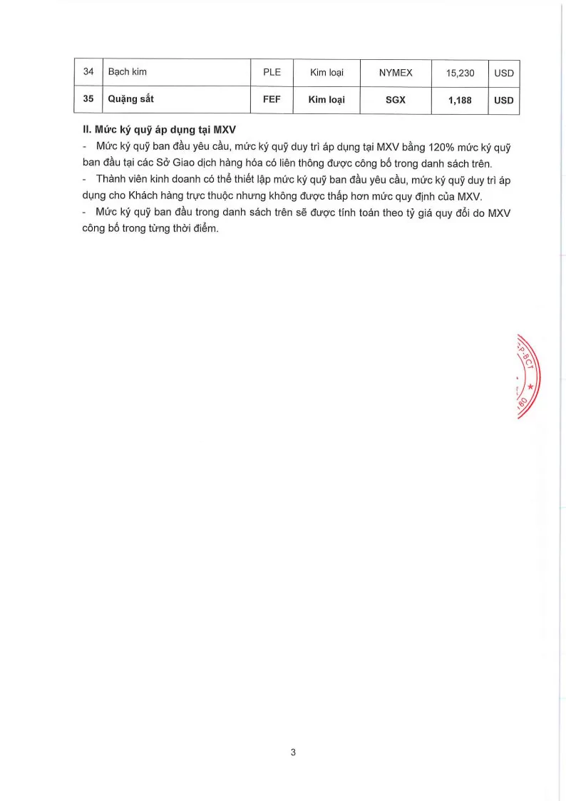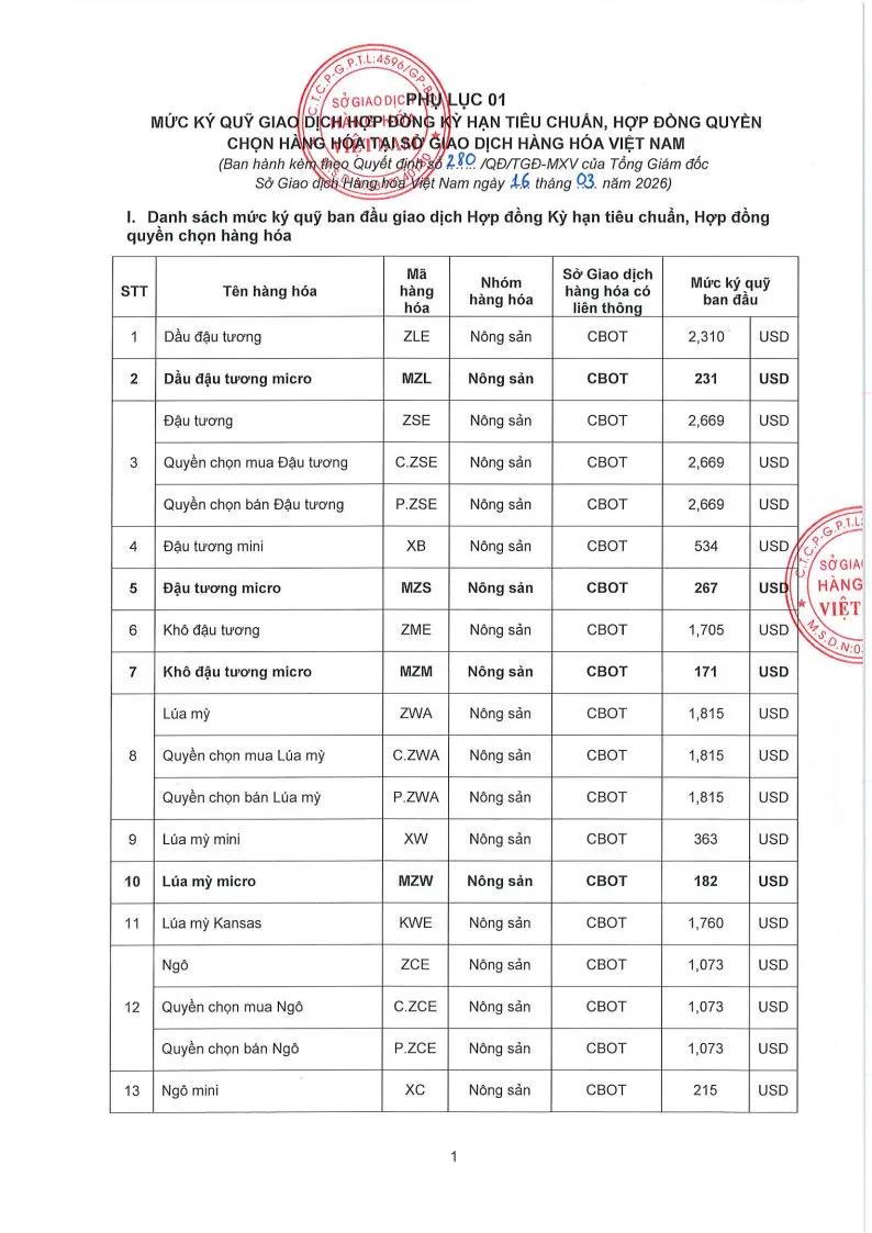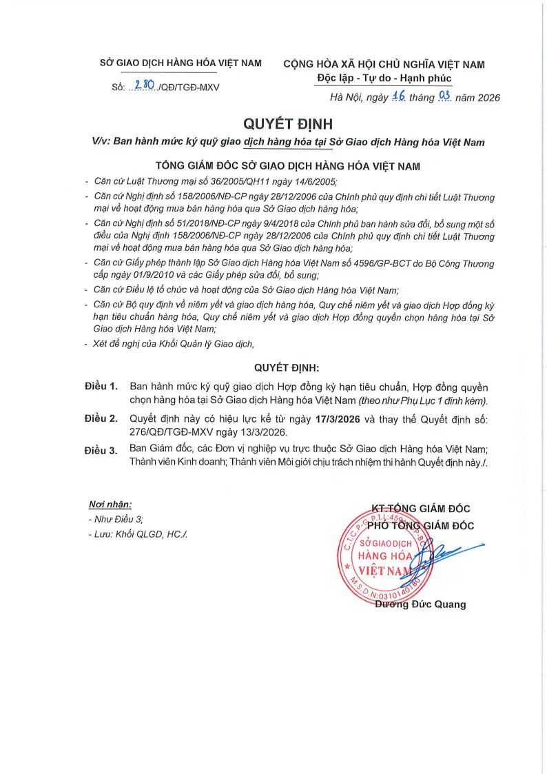 Áp dụng từ phiên giao dịch ngày 17/03/2026 và thay thế cho Quyết định số: 276/QĐ/TGĐ-MXV ngày 13/03/2026.