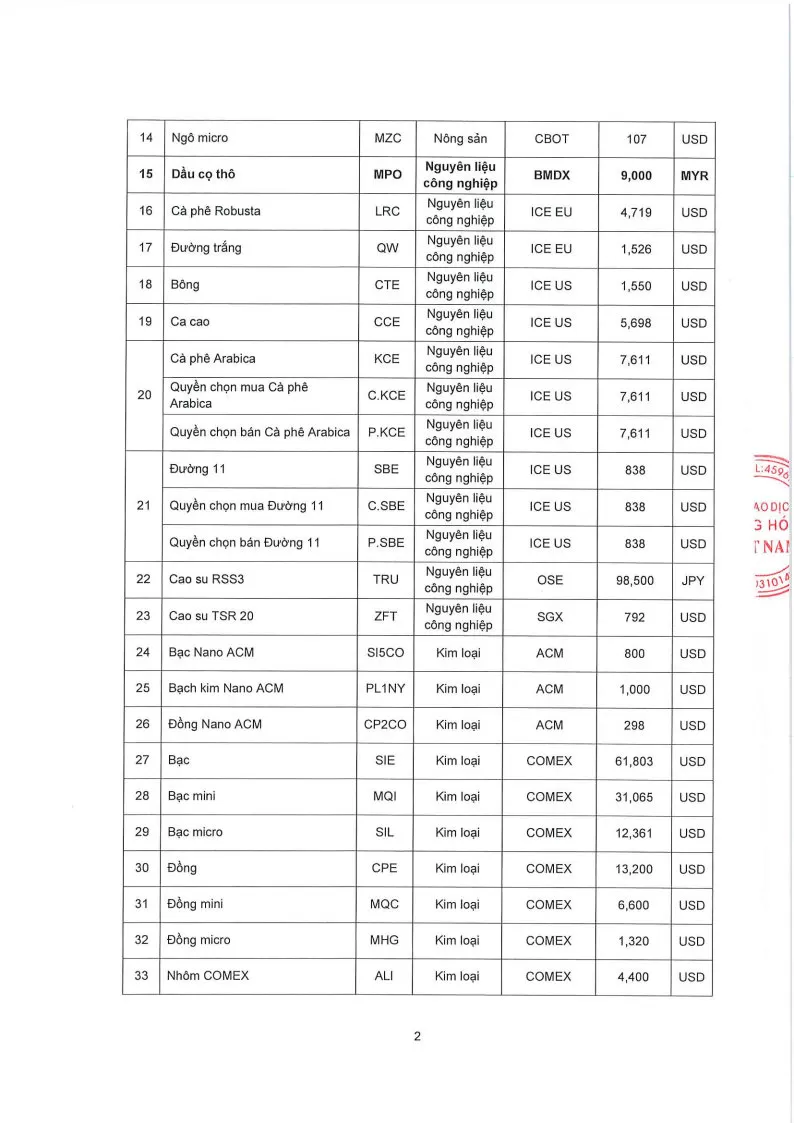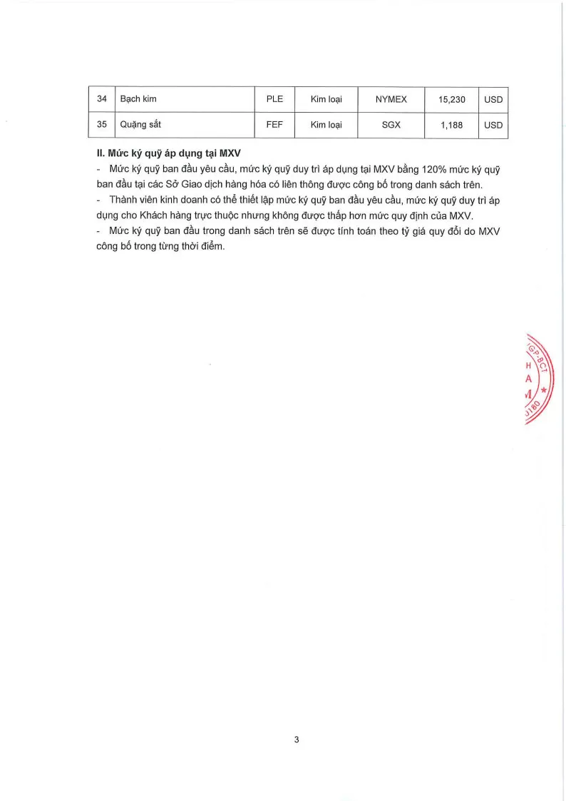 Áp dụng từ phiên giao dịch ngày 19/03/2026 và thay thế cho Quyết định số: 285/QĐ/TGĐ-MXV ngày 17/03/2026.