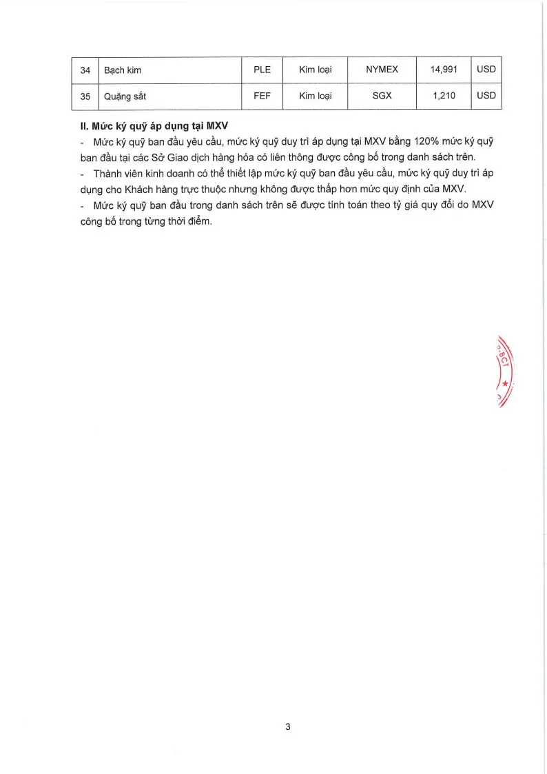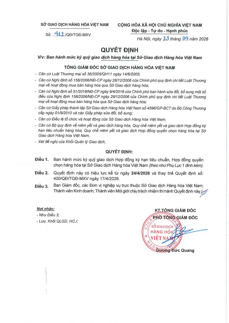Áp dụng từ phiên giao dịch ngày 24/04/2026 và thay thế cho Quyết định số: 400/QĐ/TGĐ-MXV ngày 17/04/2026.