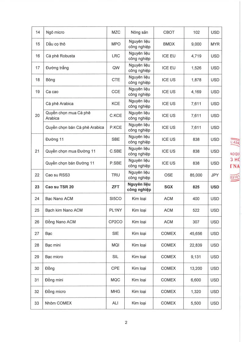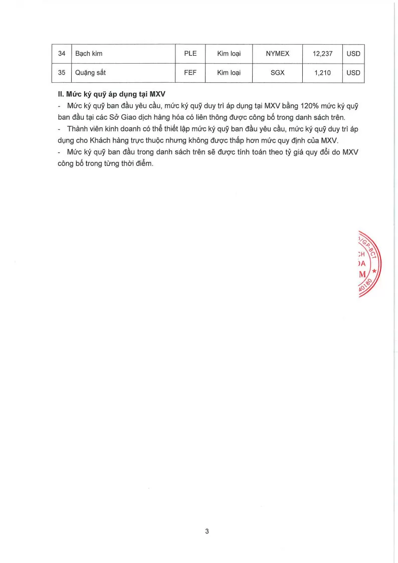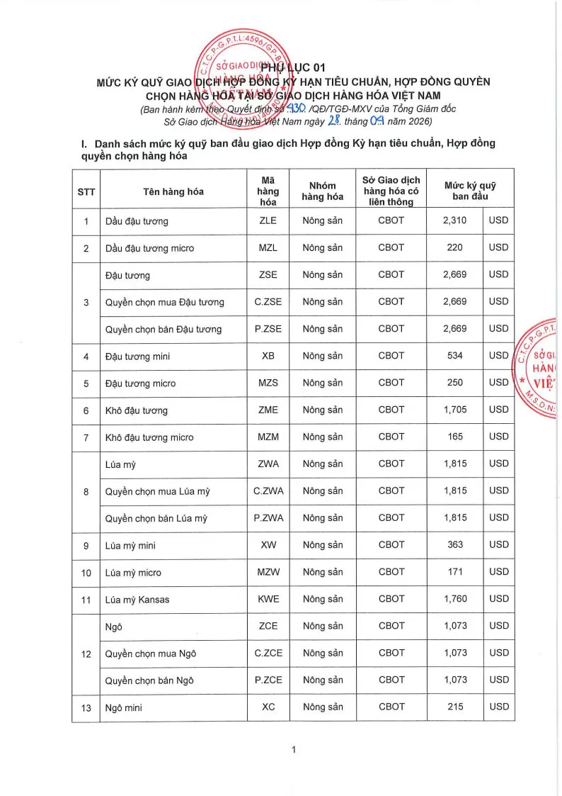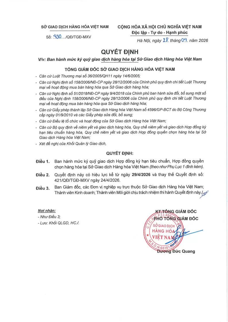 Áp dụng từ phiên giao dịch ngày 29/04/2026 và thay thế cho Quyết định số: 421/QĐ/TGĐ-MXV ngày 24/04/2026.