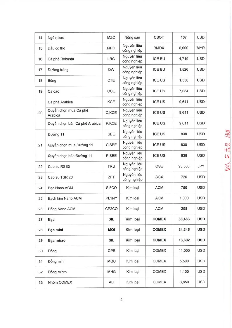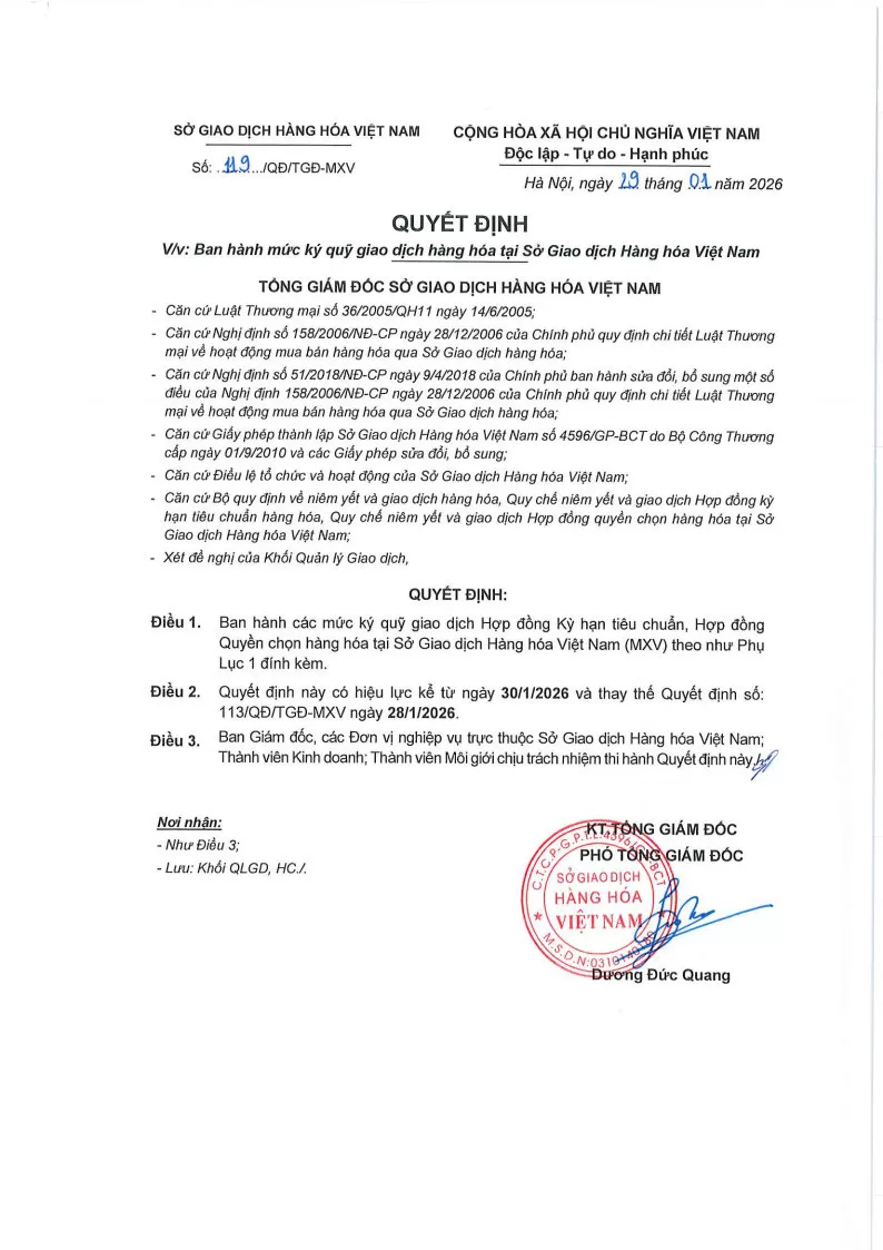 Áp dụng từ phiên giao dịch ngày 30/01/2026 và thay thế cho Quyết định số: 113/QĐ/TGĐ-MXV ngày 28/01/2026.