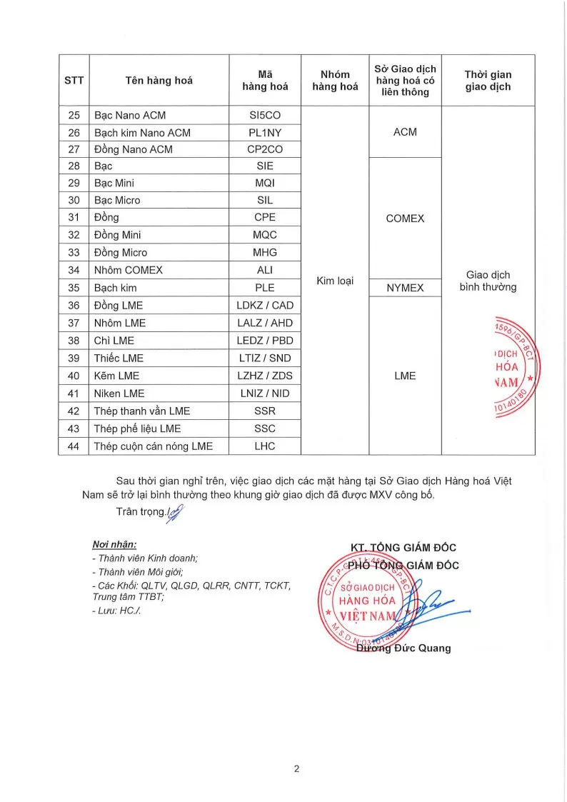 Sau thời gian nghỉ trên, việc giao dịch các mặt hàng tại Sở Giao dịch Hàng hóa Việt Nam (MXV) sẽ trở lại bình thường theo khung giờ đã được MXV công bố.