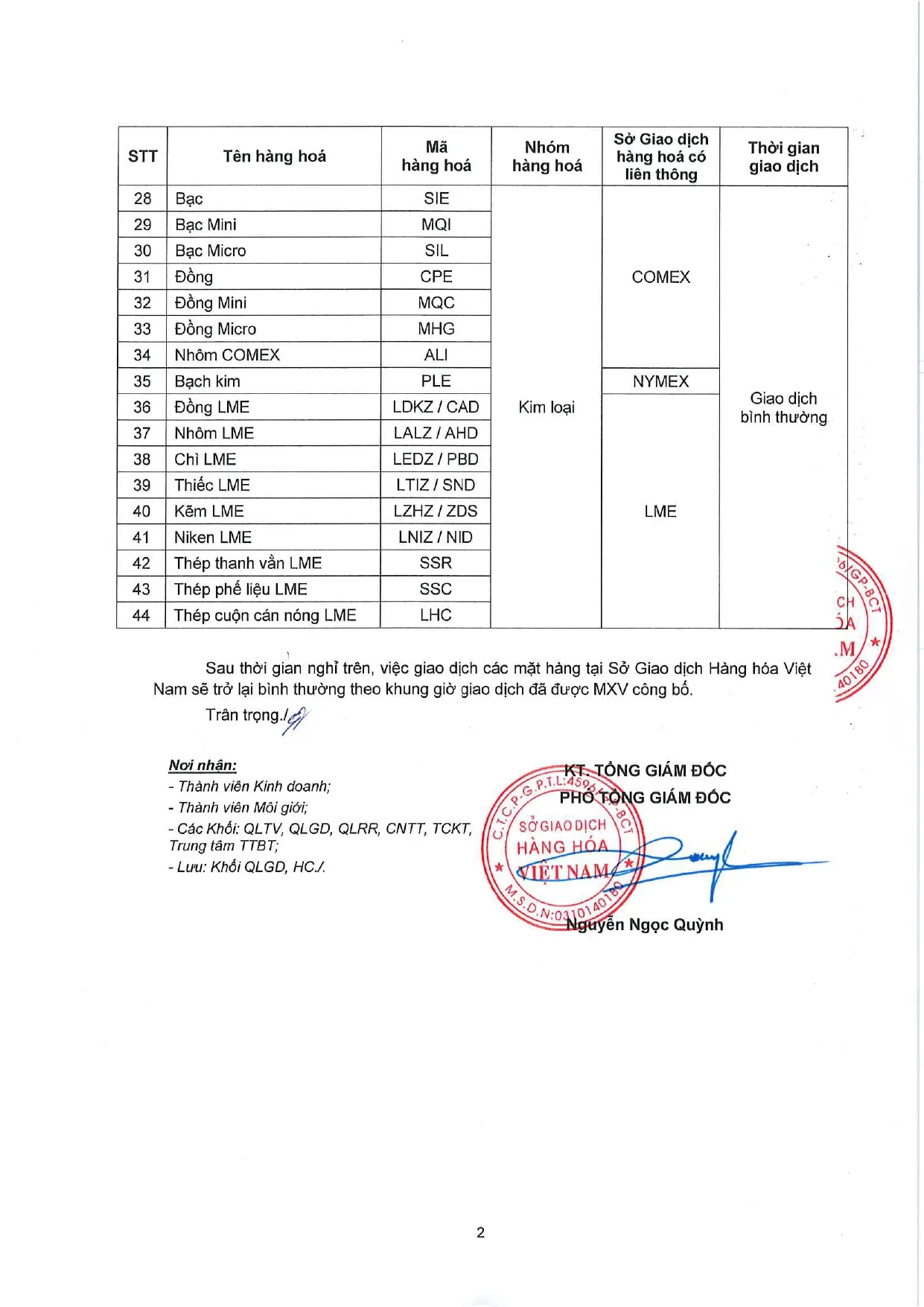Sau thời gian nghỉ trên, việc giao dịch các mặt hàng tại Sở Giao dịch Hàng hóa Việt Nam (MXV) sẽ trở lại bình thường theo khung giờ đã được MXV công bố.