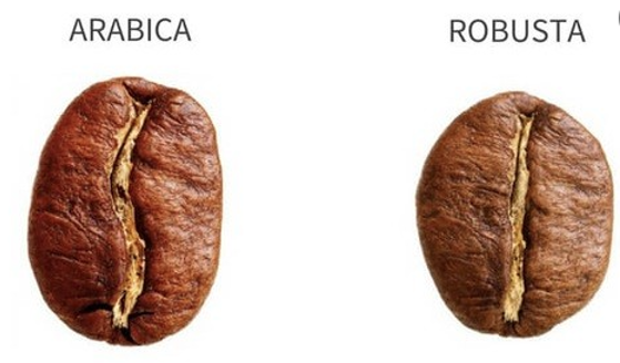 · Cà phê Arabica có hạt hơi dài, có vị chua nhẹ và hương thơm nồng nàn. Loại cà phê này thích hợp với độ cao trên 600m, nơi có khí hậu mát mẻ, được trồng chủ yếu ở Brazil (chiếm tới 2/3 lượng cà phê hiện nay trên thế giới).