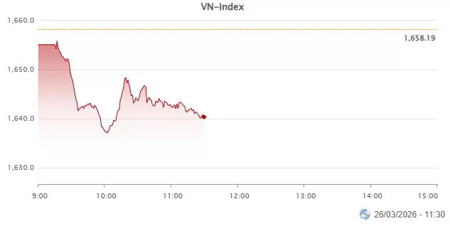 Sau các phiên hồi phục điểm số, VN-Index đang có sự điều chỉnh ngay đầu phiên 26/03.