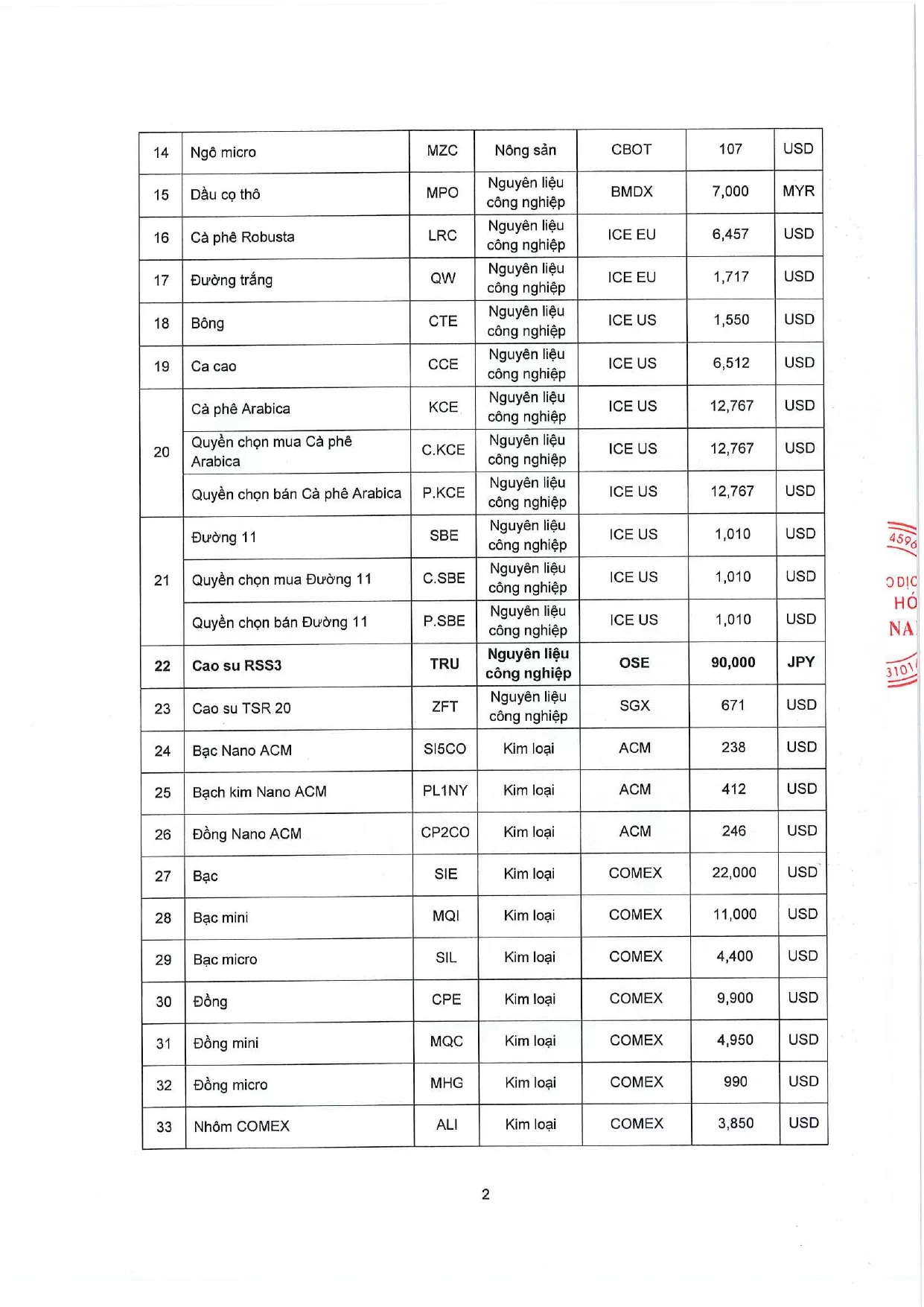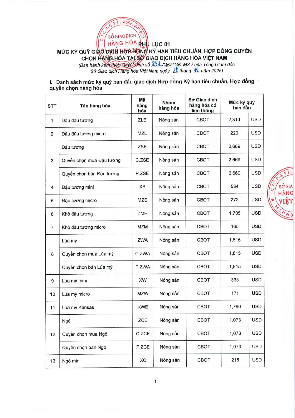 Áp dụng từ phiên giao dịch ngày 01/12/2025 và thay thế cho Quyết định số: 844/QĐ/TGĐ-MXV ngày 27/11/2025.