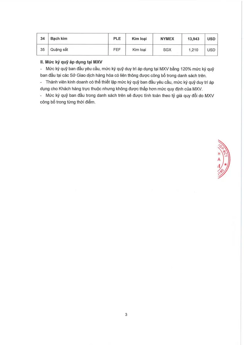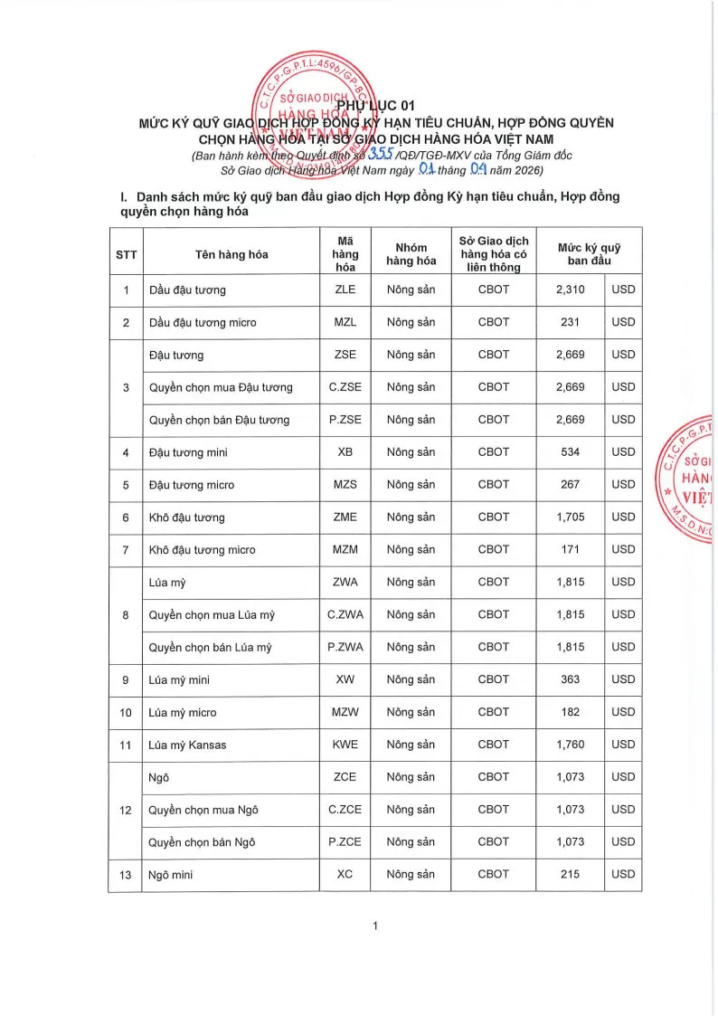 Áp dụng từ phiên giao dịch ngày 02/04/2026 và thay thế cho Quyết định số: 334/QĐ/TGĐ-MXV ngày 27/03/2026.