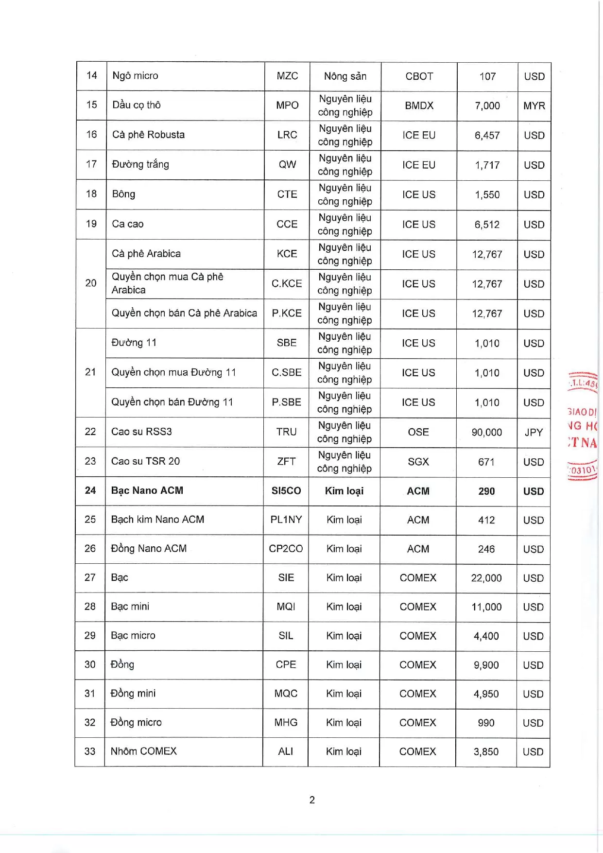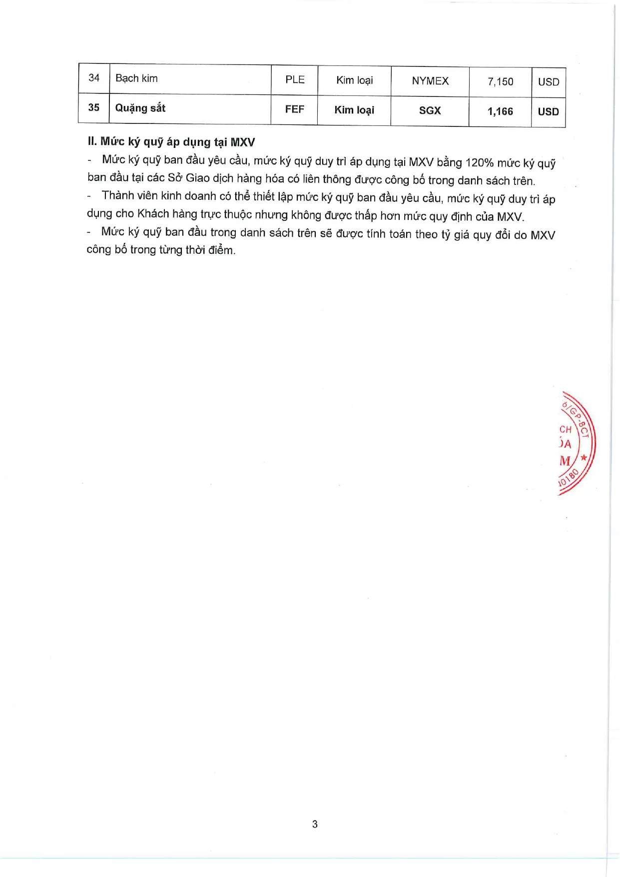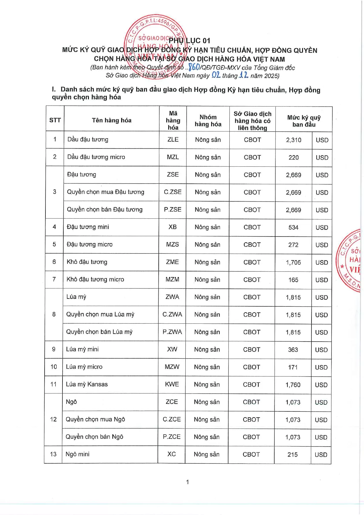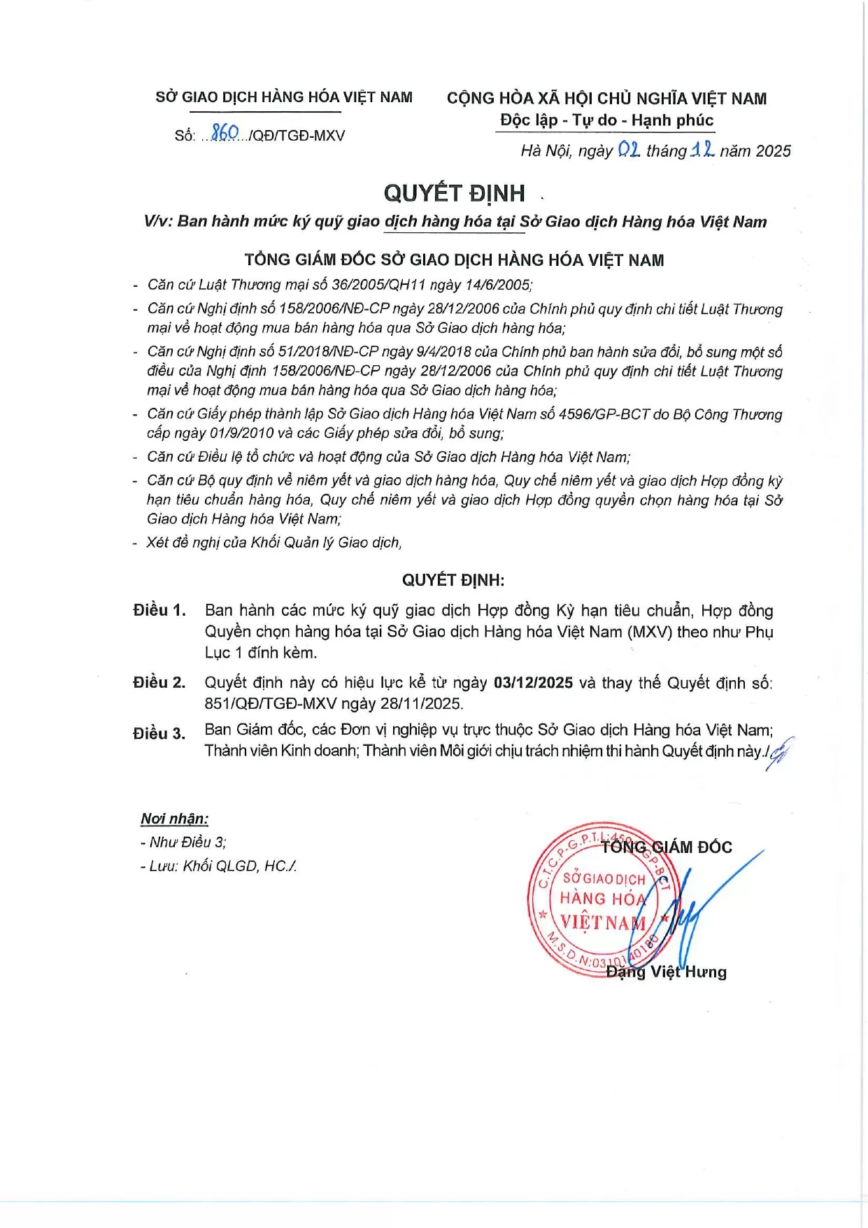 Áp dụng từ phiên giao dịch ngày 03/12/2025 và thay thế cho Quyết định số: 851/QĐ/TGĐ-MXV ngày 28/11/2025.