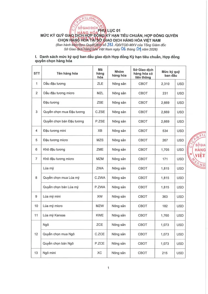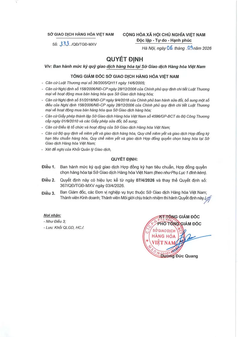 Áp dụng từ phiên giao dịch ngày 07/04/2026 và thay thế cho Quyết định số: 367/QĐ/TGĐ-MXV ngày 03/04/2026.